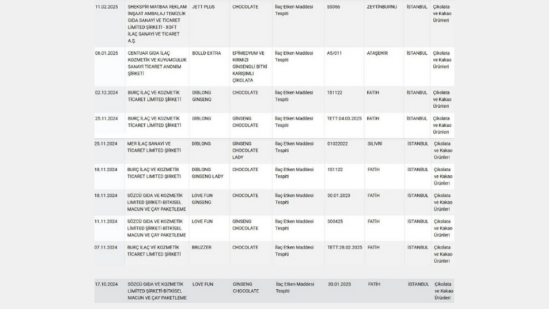 Bakanlık tarafından son beş ay içinde yapılan denetimler sonucunda, çeşitli çikolata markalarında sağlık için risk oluşturabilecek uygunsuzluklar belirlendi. Bu ürünler, “Sağlığı Tehlikeye Düşürecek Gıdalar” listesine eklendi.