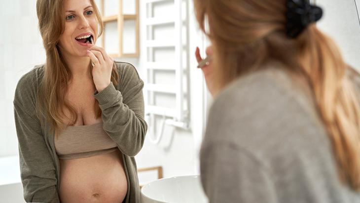 “Eğer, var olan diş çürüklerinin ve diş eti hastalıklarının tedavileri tamamlanmadan hamilelik başlamışsa, bu durum hem anne adayı hem de bebeğin sağlığı için çok daha fazla önem taşır” açıklamasında bulunan Çocuk Diş Hekimliği Uzmanı Dt. Nurgül Demir sözlerine şöyle devam etti: “Hamileliğin ilk 3 aylık döneminde sıklıkla görülen bulantı ve kusma, diş yüzeylerinde mineral kaybına sebep olarak, ‘erozyon’ dediğimiz diş aşınmalarına yol açabilir. Bu dönemde sodyum bikarbonatla gargara yapmak, ağız içindeki asidik ortamın nötralize edilmesine yardımcı olur. Akıllarda kalması gereken ise, kustuktan hemen sonra yapılan diş fırçalamanın diş yüzeylerinde meydana gelebilecek aşınmayı arttırabileceğidir. Kusmadan sonra dişlerin fırçalanması için 45 dk-1 saat beklenmesi gerekir. Düzenli olarak sodyum floridli ağız gargaralarının kullanılması, dişlerden sert doku kaybını önlemeye yardımcı olurken, aynı zamanda diş hassasiyetinin de kontrol altında tutulmasını sağlar.”